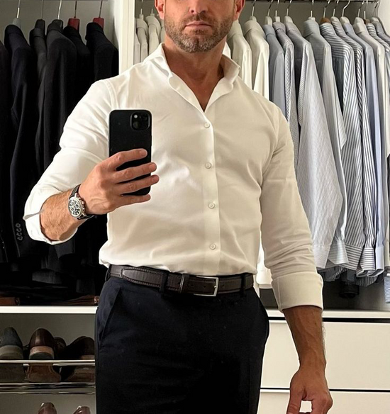 La chemise coupe ajustée, suit les courbes de la silhouette. Par exemple, une coupe droite floute le corps, une coupe serrée moule le corps. La coupe ajustée c'est le meilleur compromis entre les deux : ni trop à l'étroit, ni trop large. Le tissu extensible, joue aussi sur votre liberté de mouvement.